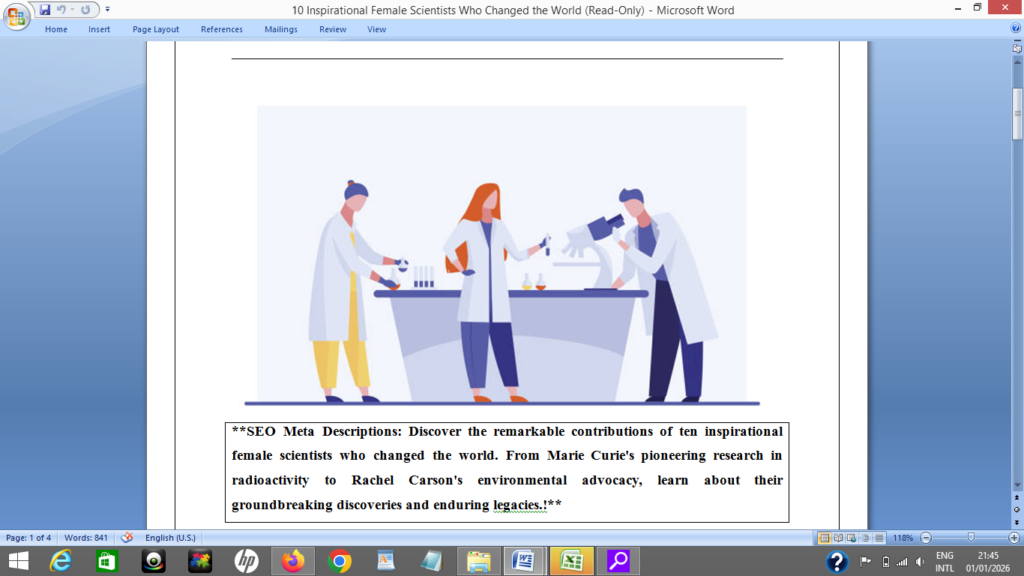 SEO Meta Descriptions: Discover the remarkable contributions of ten inspirational female scientists who changed the world. From Marie Curie’s pioneering research in radioactivity to Rachel Carson’s environmental advocacy, learn about their groundbreaking discoveries and enduring legacies.!**